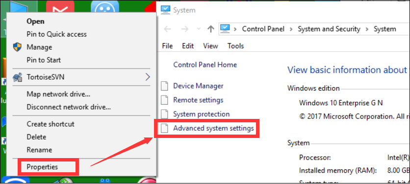1.We need to select 【This PC】----【Properties】---【Advanced system setting】. As shown below.