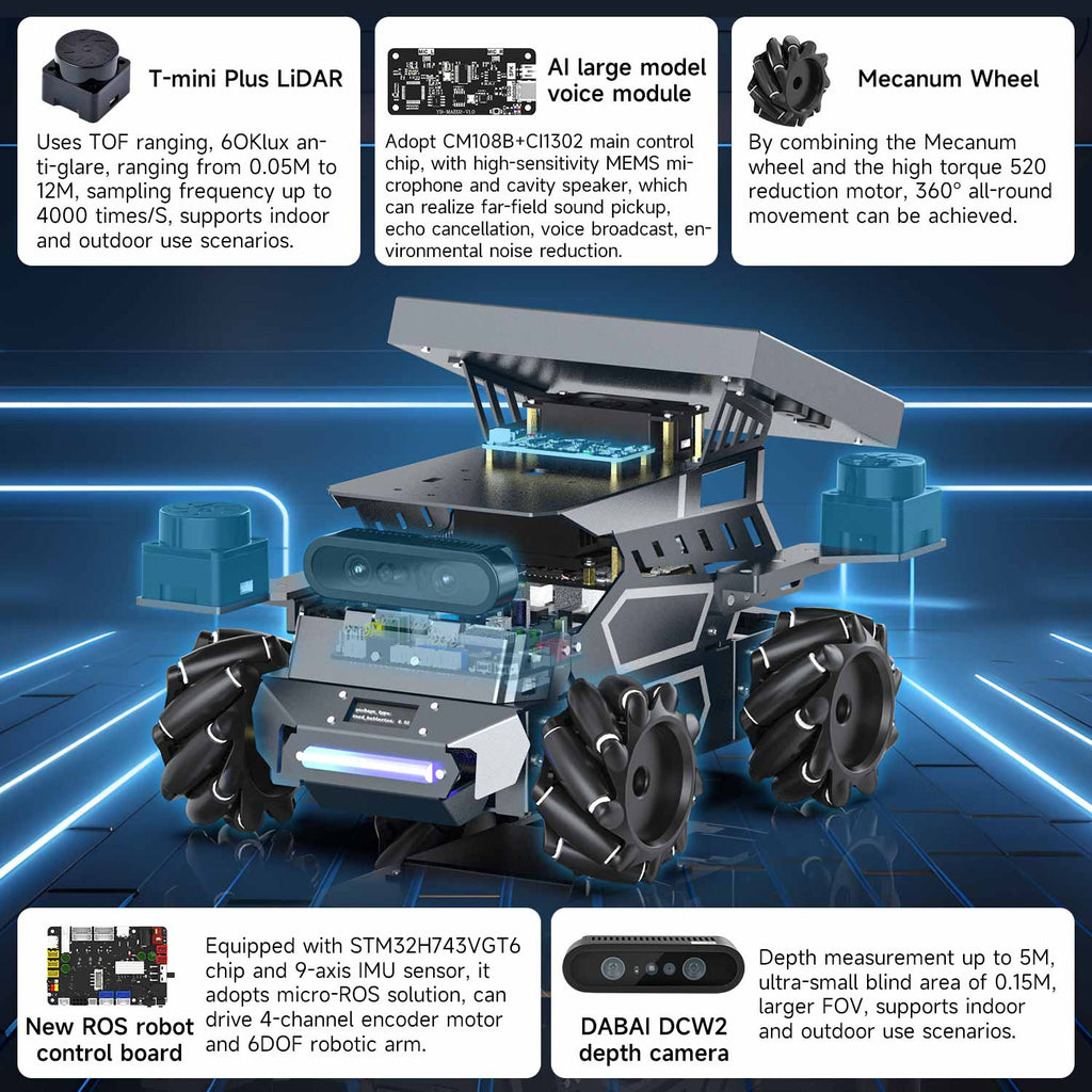 ROSMASTER M3 AI Large Model ROS2 Robot with Mecanum Wheel for Jetson Orin NANO/NX SUPER/RDK X5/RaspberryPi 5