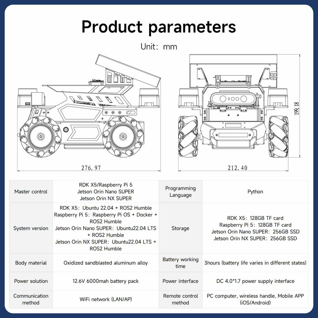 ROSMASTER M3 AI Large Model ROS2 Robot with Mecanum Wheel for Jetson Orin NANO/NX SUPER/RDK X5/RaspberryPi 5