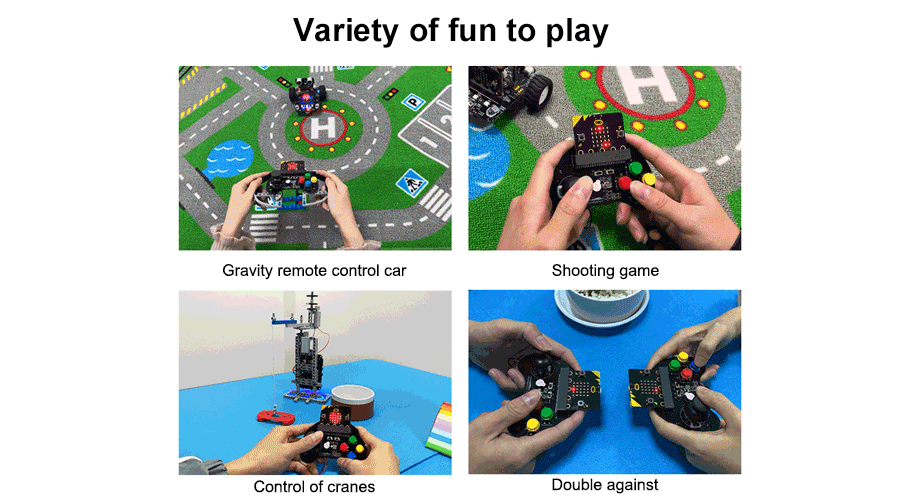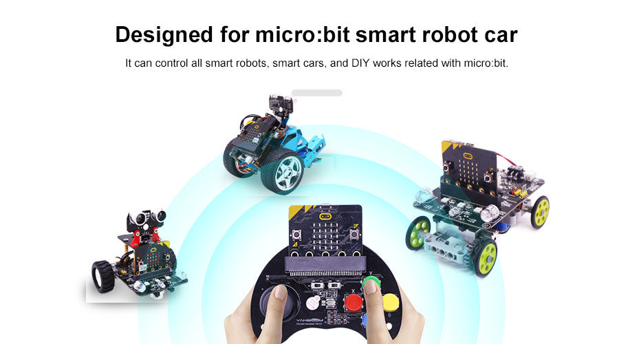Microbit handle is used for remote control of the Microbit car, which adopts the wireless function inherent in the Microbit motherboard and does not require any antenna. -