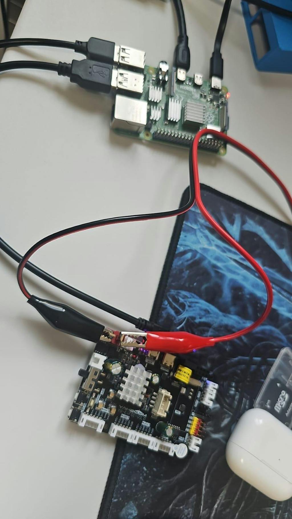 Hi, I bought the Expansion Board V3 and connected it to my Linux laptop via micro-USB. Instead of a battery, I used a 12V 3A power adapter, but the board keeps beeping and the OLED shows 'low battery'. I don’t want to use a battery or Raspberry Pi—only my laptop. What could be the problem, and what’s the solution?